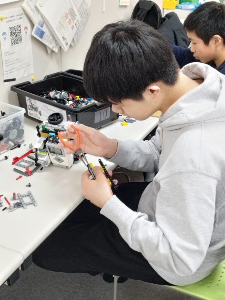 チームの話し合いで世界大会へ向けてアタッチメントをすべて作り直すことになりました そのために、現在はベースロボットとアタッチメントの接続部を改良しています!